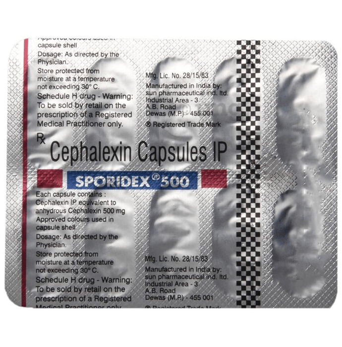 Sporidex 500mg Cefalexin Drug Price and Information Medindia currently has information on 3080 generic drugs and 109870 brands that have their prices listed. Phexin Pead Drop - 7358. Cephadex 500 MG Capsule is an antibiotic used to treat bacterial infections in different parts of your body including the skin bone ears throat lungs and urinary tract.